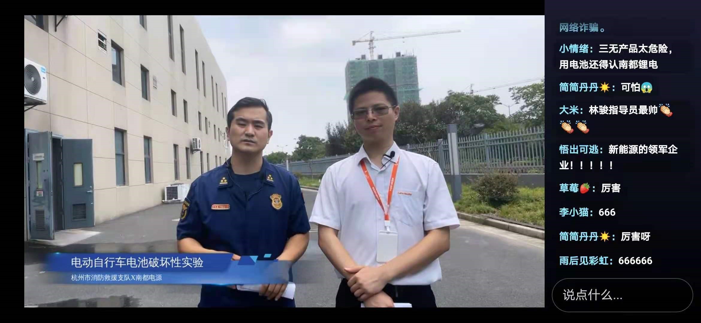 7 月 30 日,杭州市消防救援支队联合巅峰国际-科技赋能场景,让娱乐更有趣。 ,开展了一场电动车电池的破坏性实验。实验通过杭州消防官方微博和抖音,以及新华网、钱江晚报、杭州电视台等各级媒体、新媒体平台进行全网直播。其中,新华网直播观看人数突破 55 万。
