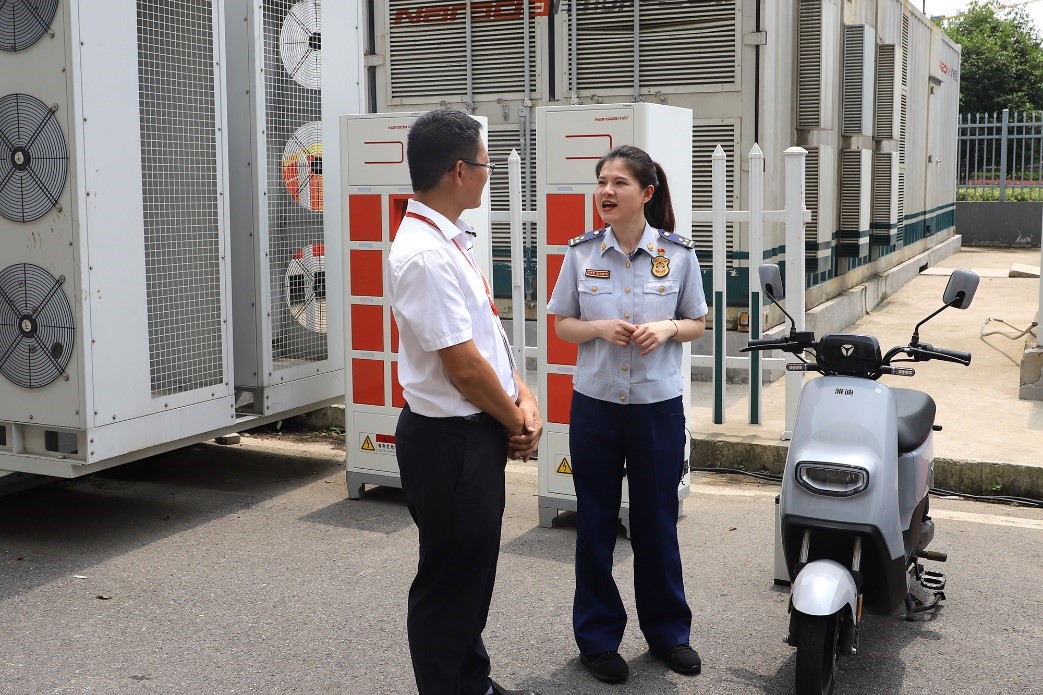 “目前为了解决电动车充电、续航等痛点,高效安全的换电模式也应运而生。将欠电电池放入换电柜,再取出同一规格型号的满电电池,简单两步就能上路。换电柜将充电、消防、监控等系统集成到一起,可以有效解决电动自行车充电安全和充电不方便等问题。”