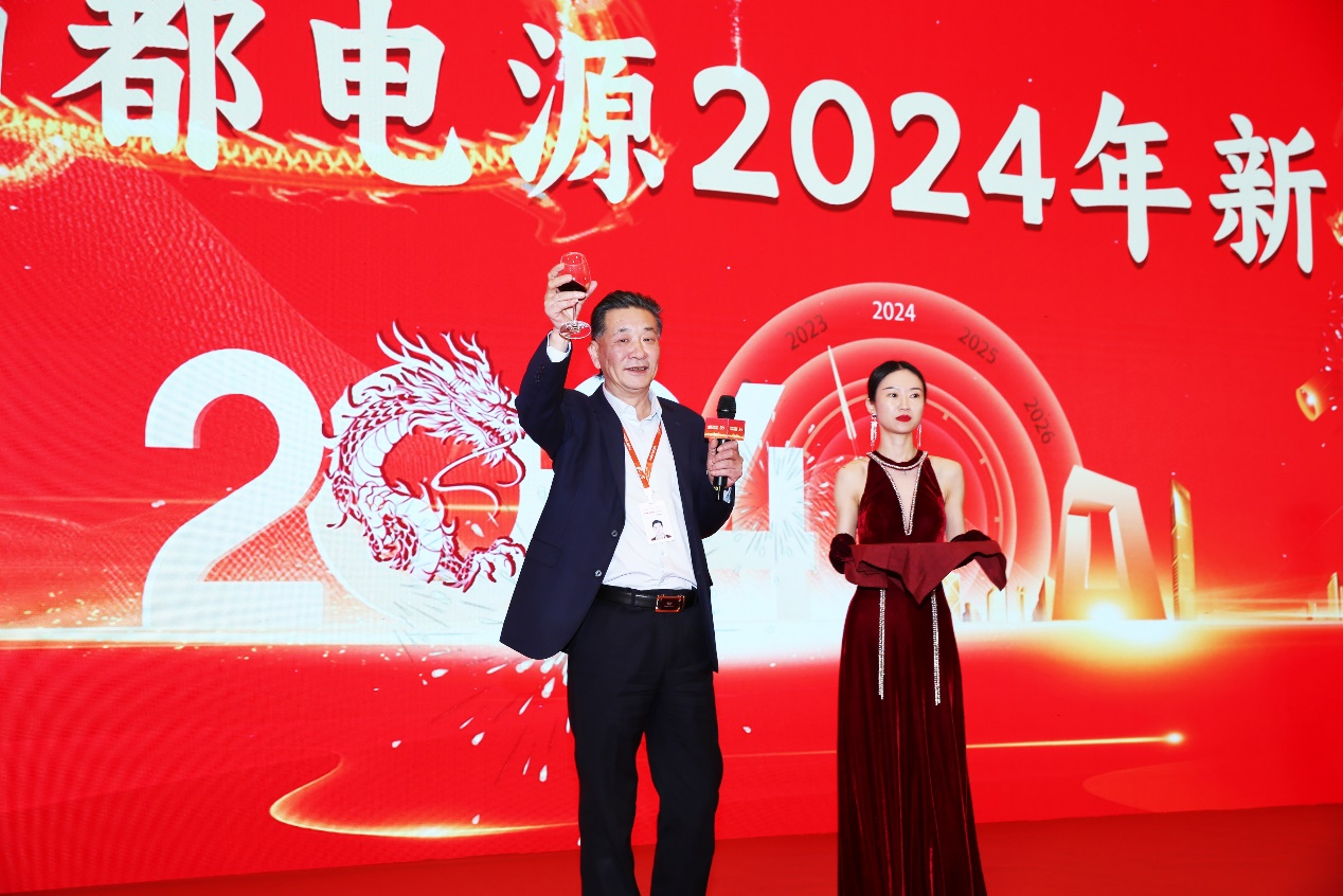 公司副董事长王岳能在晚会上致新春贺词。他感谢了全体南都人在2023年的辛勤付出。新的一年里,希望全体员工在朱保义董事长的带领下,凝心聚力、砥砺前行,全面完成2024年的各项指标,再创巅峰国际-科技赋能场景,让娱乐更有趣。 辉煌的30年!随后,王岳能副董事长在台上与全体员工共同举杯贺新春。