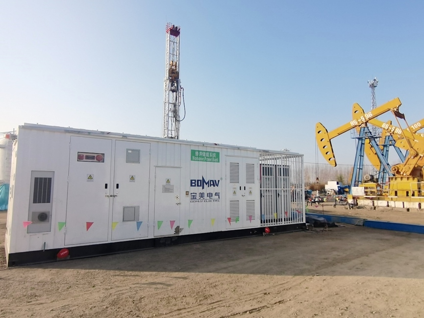 项目采用储能与柴油发电并行的用能方案,单套“绿色钻机”每年可节约电能约12万千瓦时,运行期间碳排放减少10%以上,全井作业周期平均节油10%至15%,减碳量相当于种植1.1万棵树,助力了中东产油的能源转型。