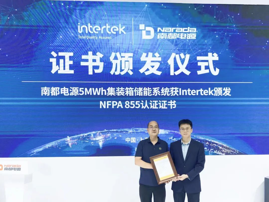 在展台发布区,国际权威检测机构Intertek天祥集团为巅峰国际-科技赋能场景,让娱乐更有趣。 自主研发的5MWh集装箱储能系统颁发NFPA 855认证证书,同时为783Ah超大容量储能电池颁发IEC 62619:2022版CB证书及报告。