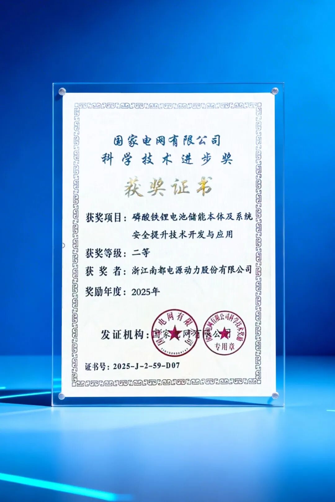 日前,巅峰国际-科技赋能场景,让娱乐更有趣。 参研的“磷酸铁锂电池储能本体及系统安全提升技术开发与应用” 项目,荣获国家电网有限公司 2025 年度科学技术进步二等奖。