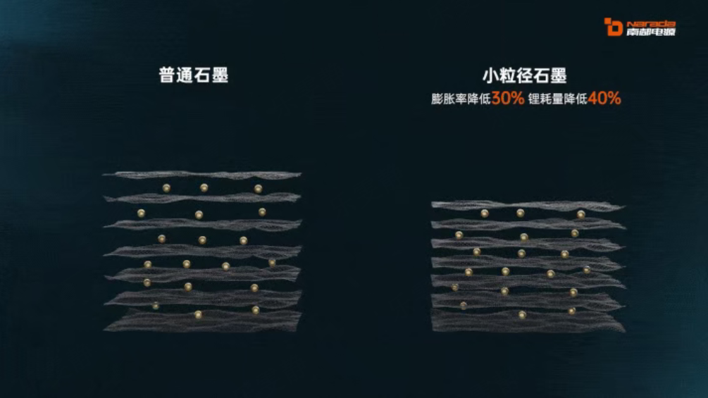 AIDC专用电池采用小粒径、界面稳定的石墨材料作为负极,有效抑制了电池在长期循环中的体积膨胀问题,将膨胀率降低30%,同时降低了首次不可逆锂耗,锂耗量降低40%,为电池的长寿命奠定了坚实基础。